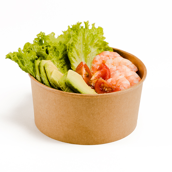 Arròs japonès, llagostins, alvocat, coleslaw, tomàquets cherry i brots verds amb el nostre exòtic superdressing.