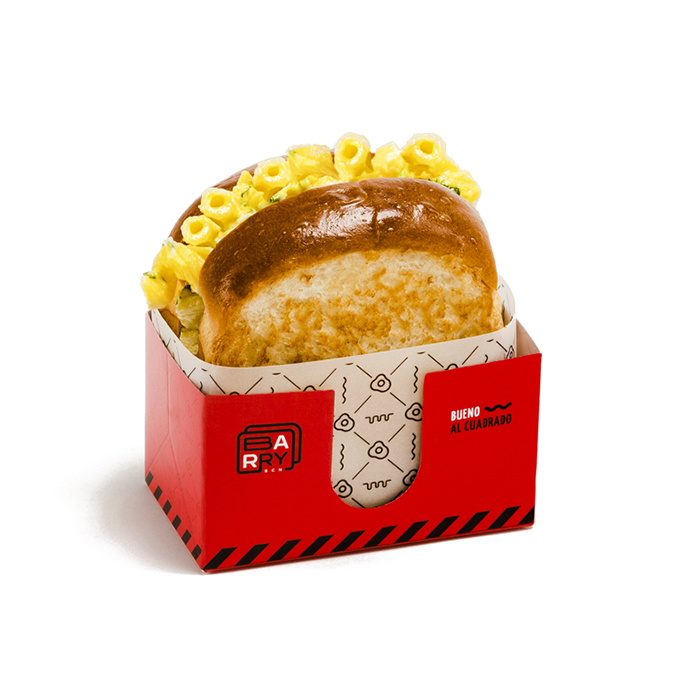 Macarrons amb formatge fets en cassola amb bacó cruixent entre dues llesques del nostre pa de llet artesà.